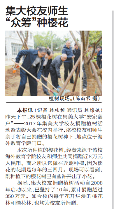 厦门日报:《集大校友师生“众筹”种樱花 》www.xmnn.cn/dzbk/xmrb/20170309/201703/t20170309_5051806.htm