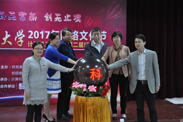 参加仪式的领导、嘉宾共同按动启动球,我校2017年网络文化节暨计算机工程学院第二届IT科技节正式启动。