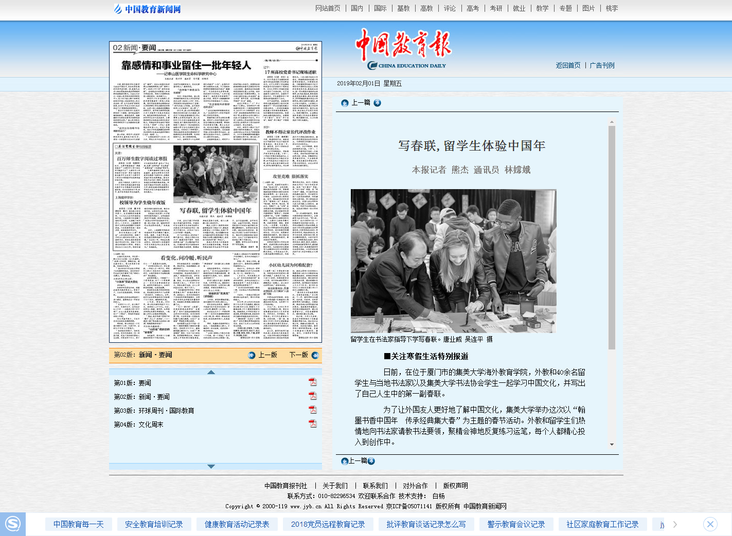 【中国教育报 中国新闻网 厦门日报 海西晨报】集大留学生书写春联感受中国年不一样的文化-亚洲中文精品乱码