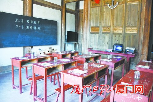 大田集美水产航海学校旧址陈列馆里模拟还原内迁时期的上课场景。(本报记者 林桂桢 摄)
