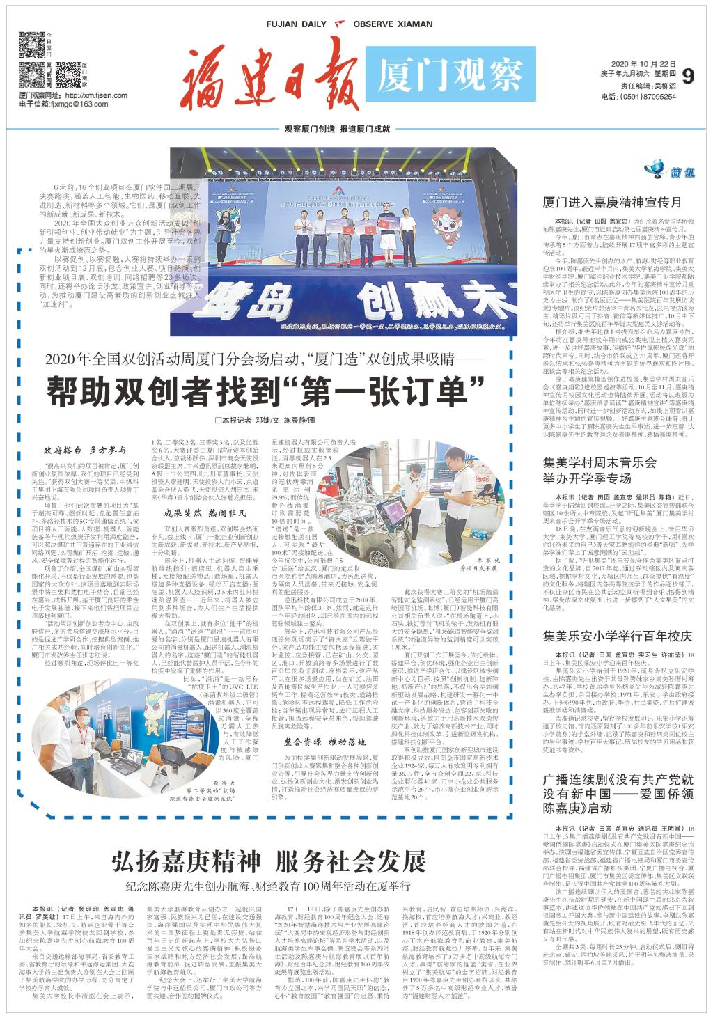 【福建日报】纪念陈嘉庚先生创办航海、财经教育100周年活动在厦举行