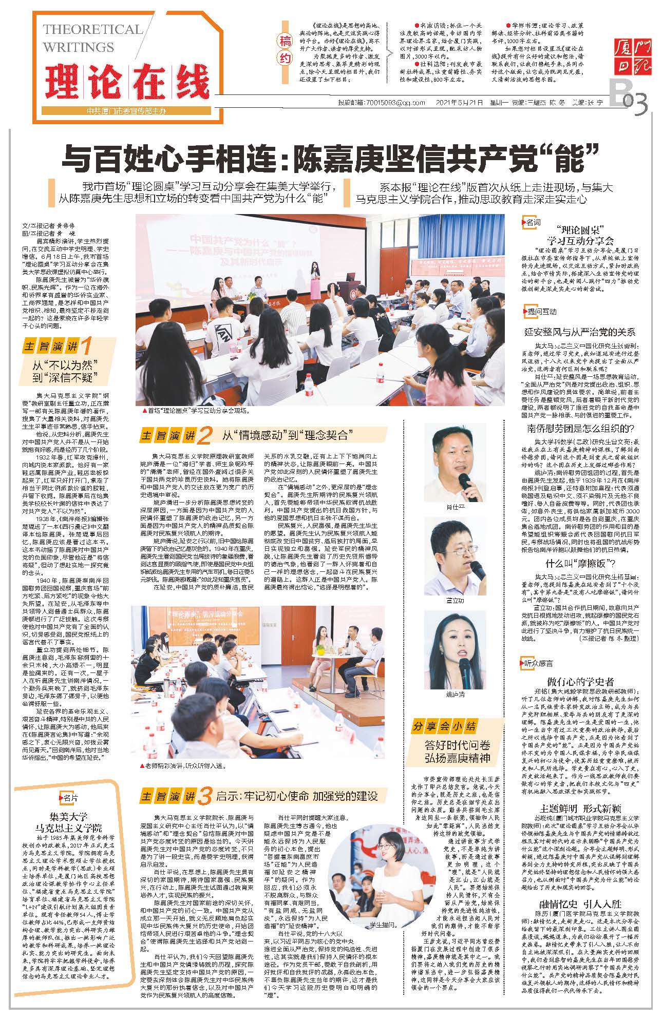 “理论圆桌”学习互动分享会,是厦门日报社在市委宣传部指导下,从单纯纸上宣传转为走进现场,以交流互动方式,紧扣时政热点,结合市情实际,搭建深入生动宣传党的理论的新平台,也是新闻人践行“四力”推动党报创新走深走实走心的新尝试。